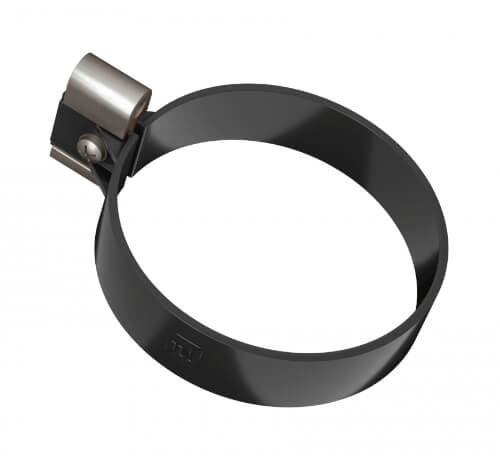 Хомут трубы ТЕХНОНИКОЛЬ ПВХ МАКСИ антрацит – элемент водосточной системы, которая устанавливается на скатных кровлях. Используется, чтобы закрепить трубу на нужном расстоянии от фасада. Размер – 140 мм.